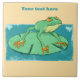 En söt tecknad stil illustration av en liten grönt groda som står på en liljepad i en damm. Tänk på alla som kärlek gror
