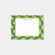 Fästande anteckningar med ett sött upprepande mönster med oliv grönt klöver mot mörk grönt bakgrund. En vit rektangel som läggs ovanpå med faux guld-folie gräns. Anpassa med din egen text.