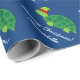 Cute grönt, lef turtle Bars Jul Wrapping Papper. Utformning av matardjur med lustig labbhatt. Personlig- och gåvor till föräldrar, barn och spädbarn. Lustigt illustration för Helgdagarna på vintern. Lägg till egna namn- och anpassningsbar-säsonhälsningar som God jul eller Glad helg. Roligt för Julafton babydusch party. Anpassadets bakgrund färg ie blue. Könsneutral design för pojkar och flickor.