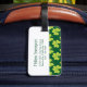 En personlig bagagetapp med en söt upprepande mönster av oliv grönt klöver på mörk grönt bakgrund. En finare vintage ram överst med texten inuti. Ram har en faux guld foil gräns.