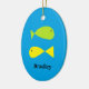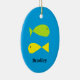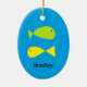 Cute grönt och gult fiskar i blått julgransprydnad keramik