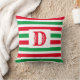 Den här söta kudden har grönt, rött och vitt rand och kan anpassas med en början.