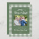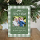 För familjen som vill skicka ett julkort till helgdag till vänner och familj. Det här fina julhälsningskortet kan vara en personlig om du tar med dina egna detaljer och familjefoto. Utformningen är söt, enkel och elegant och har en grönt gingham/check mönster-bakgrund med en säsong hand plockade-doodlbåge. Kontakta oss om du vill ha några skräddarsydda eller anpassade förfrågningar.