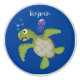 Cute grönt Sea turtle lycklig tecknad illustration Knopp