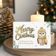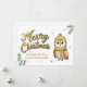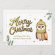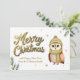 Det här fina God jul-kortet har ett sött uggla med en helgdag som är läskigt bredvid ett faux glitter guld-skript och ditt anpassningsbar-meddelande under. Söt gräs lämnar ut från hörnen av detta trendig trädjordåd, teckning-kort fyllt med viskliknande snöflingor.