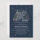 Kute Twinkle Little Star Shower-inbjudan med trendiget marin blå bakgrund, en faux guld-abstrakt-regnbåge, en spridning av guld-stjärnor och en modern mall som är lätt att anpassa.