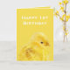 Cute gult baby Chick 1:a Grattis på födelsedagen Kort