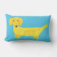 Lägg en bananberöring till din soffa eller säng med den här söta kudden. Det är ett exempel på en hund i Dachshund stil som består av gult bananer som ställs mot en ljusblå bakgrund. Den omvända sidan har ett samordnande mönster av gulten hundar och grönt handflatan löv.