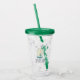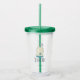 Personlig akryltumlare med söt leende dinosaurer, rosa rosy-kinder och RAWR skriven på sin buk. Tre färgfulla lycklig-stjärnor ovanför hans huvud.