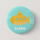 En vacker tecknad av en ubåt i gulten med blå fönsterrutor och bubblor som kommer ut från sidan. Bakgrund till blåvågsfartyget linjer för att visa att undervattensfarkosten är under vatten. Den här attraktiva och söta knappdesignen med lugn blå och gult är roligt för småbarn och barn som de kan använda fästa vid sina skolväskor eller caseser med trasa-pennor. Anpassa enkelt med barnets namn.