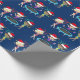 Denna vackra julomslutning i gymnastik papper har tre söta gymnastikflickor som bär julhattar och som håller en attityd med rosett band på en söt blå helgdag bakgrund. Blindingen håller ett rött band, brunetten hoppar på en trampolin och den afrikanska amerikanska flickan håller ett grönt band.