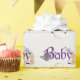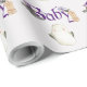 Den här söta och skämtsamma anpassningsbarna med pappra inslag är ett Halloween-babyduschtema. En bild med ett litet vitt spöke skrivs ut nedanför "Baby" i ord, som skrivs ut med ett sött typsnitt för lila. Spindelnäten och baby fladdermus accentuerar texten. Du kan anpassa figursättningen pappert så att den innehåller din egen namn- eller anpassningsbar-text.
