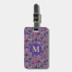 Den här söta Halloween-bagagetaggen har en svettare som mönster är baserad på temat med trikå från klassiska Fair Isle. Mönster är av lila- och grönt-cirklar och diamant rand. Varje form har olika söta Halloween-motiv i den. Du har en svart katt med måne, Frankensteins huvud, lycklig jack o’ lantern, skalle med röd öga, häxhatt med fötter, gravgård med spöken, vampyr läppar/tänder med fladdermöss, och en beträdande stängslet med ett fall träd måne med fladdermus. Mellan formgivningarna finns candy corn, omslagna godis och diamantformgivning. På framsidan i matchande färg kan du placera ditt första. På baksidan kan du anpassa detta med din information eller ta bort informationen för att den ska vara tom.