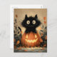 Cute Halloween Black Cat på en Jack-o'-Lantern Helg Vykort