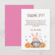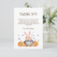 Ett Baby brinner! Fira Halloween-babyduschtemat med det här söta Halloween Cauldron Baby är Brewing Shower Tack You Card. Den här designen omfattar orange pumpkin, söt bunny i Halloween-kauldron, spinder, spindelnät, skallvattenfärg. Alla texter kan redigeras!