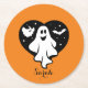 Cute Halloween Ghost med hjärta och Fladdermus Round Papper Underlägg