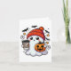 Cute Halloween Ghost med Pumpkin och kaffe Kort