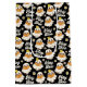 Cute Halloween-spöket med bok och blomma mönster mot svart bakgrund.