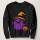 Lägg till ett skämt, sött vibb till din Halloween med det här vackra lila spökdekalen! Med ett lekfullt spöke som bär en häxhatt bredvid en leende pumpa är den här designen perfekt för dekorering av bärbara datorer, vattenflaskor, skrotböcker och Halloween fest-favoriter. En roligt och ett unikt sätt att fira säsongen!