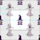 Cute Halloween gnome klädd i lila och häxhatt med spinder och vitt, läskigt, läskigt spöken. Skapat till ett sömlöst mönster. Du kan ändra bakgrunden i verktygen Design.