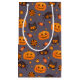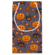 Toppen halloween mönster. På den här bilden ser du pumpor, spindlar, uggla, stjärnor och godis. Mönster-designen finns på lila polka-punktbakgrund.