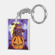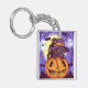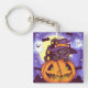 Den här designen har en häxkatt ovanpå en gigantisk pumpa, med en blå/lila bakgrund med två spöken