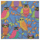 Dessa kloka ugglor, med sin stora ögon och rosa, orange, lila och grönt, sitter i ett träd med färgstarka höst löv på en blå prickad bakgrund. Perfekt för en uggla-älskare eller Halloween-säsong! Originalteckning © Anne Coffey.