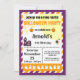 Cute Halloween-partiets inbjudan till Barns födelsedag med spöken, ett gammalt slott, spindlar och pumpor. Det färg som används är lila, orange, svart och vitt.