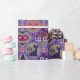 Den här pappra slingan från Cute Halloween har en Cute Halloween Knitten Sweater Mönster är baserad på temat med trikå från den klassiska Fair Isle. Mönster är av lila- och grönt-cirklar och diamant rand. Varje form har olika söta Halloween-motiv i den. Du har en svart katt med måne, Frankensteins huvud, lycklig jack o’ lantern, skalle med röd öga, häxhatt med fötter, gravgård med spöken, vampyr läppar/tänder med fladdermöss, och en beträdande stängslet med ett fall träd måne med fladdermus. Mellan formgivningarna finns candy corn, omslagna godis och diamantformgivning.