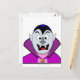 Den här konstiga tecknaden vampyr bild jobbar för Halloween eller ett vampyrtemerat party. En söt tecknad vampyrbild, med blek hud och öron, som bär lila, ler en toothy flin.