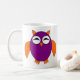Den här snyggten mugg har ett sött uggla med öga stängt som om det vore sömnsamt och sött klo. Dess kropp är lila och dess vingar, öron och klo och näbba är orange. Det här söta uggla är så vackra vuxnor att kärlek det är lika mycket som barn.