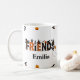 Cute Halloween-eget namn mugg för vänner. Utformningen har texten "Vänner" i svart och orange motif-stil typografi med orange, gult och svart Halloween inslag. Gör det till den bästa personligen för din bästa vän. Perfekt för att få dem att känna sig speciella, öka deras förtroende och få en unik och löjeväckande gåva! Vi har till och med sweatshirts, nyckelkedjor och skjortor med samma utformning i vår samling. Kolla in det. Happy halloween!
