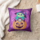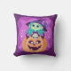 Cute Halloween Witch på Spooky Pumpkin och Cat Kudde