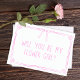 Fråga din lilla blomflicka på det sötaste sättet med det här charmerande och anpassadet "Kommer du att bli min älskling?"-kortet. Det här kortet är en perfekt för att skapar henne att känna sig speciell. Det har en enkel utformning av rosan, men med delikat blommigt och en bugg. Anpassa det med hennes namn för en personlig kontakt. Idealisk för brider tittar att tillföra bröllop ett djupt ögonblick till deras förberedelser. Låt detta lovvärda kort bli en minnesvärd del av er resa i bröllop!
