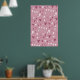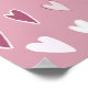 Utformningen har ett kluster med handdragna söta hjärtan i en rosa och vit palett.