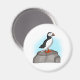 Digital art hand plockade Puffin står på sten med blå bakgrund.