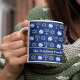 Vacker Hanukkah mugg i söt blue med en coola mönster av judenisstjärnan, drömidel för roligt Chanukah-spel och den judiska menorah för en helgdag middag eller möte med din synagog. Anpassa till din familj namn.