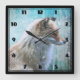 Cute Hårig Fox på Blue Grunge Background Fyrkantig Klocka
