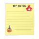 Ett lätt anteckningsblock med svart lodrät linjer och två illustrationer: ett porträtt av en söt häxa på den övre högerna och en pumpa som bär ett häxhuvud på det nedre lämnat hörnet. På toppen står det "Mina anteckningar" - ord som lätt kan bytas ut efter eget tycke.