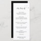 Modern bröllop-meny med en enkel och minimalistisk design i svartvitt med ord-menyn i en elegant typografi och ett sött hjärta i slutet.
