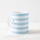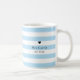 Perfekten "något blått" för bruden att vara! Anpassa detta klassiska blå mugg med hennes namn och bröllop-datum. Mugg har ett klassiskt pulverblått rand och en liten hjärtaccent. Elegantens svarta teckensnitt slutför utseendet!