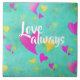 En söt vattenfärgsvalentin mönster med rosa och gult hjärtan på akvblått underlag. Jag lade till textmallar som säger: Kärlek alltid längst fram och du lägger till ditt eget namn längst bak. Välj din storlek.