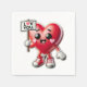 Ett lycklig-rött hjärta som håller ett "Kärlek You"-tecken.