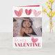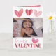 Lägg till ditt favoritfoto på det här moderna valentinesen-kortet för en roligt och ett sött sätt att fira den speciella personen i ditt liv. Den har söt texturerade hjärtan med vattenfärgen stänk struktur på vit bakgrund. Inuti detta kort finns vit text på röd bakgrund.