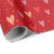 Enhance your Valentine's Day celebration with an exquisitely designed gift wrapping paper featuring charming hearts and whimsical polka dots set against a vibrant red background, creating a truly romantic and memorable statement.
