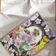 En söt hedgehog sitta bland färgade sommarblommor i en svart bakgrund.