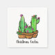 En fyllig illustration av tre söta kaktusar med vår av holly och rosa blommor i små terracotta pots.