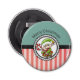 En flaska-öppnare i helgdag temat med en söt julklapp i en festlig grönt som hålls på en röd och vit strimlad candy cane. Bakgrunden är en lagerdesign med pastellgrönt på översta och röda rand på grund. Avskilt med en svart remsa med en krita struktur. God jul skriven med böjd text.