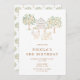 Rustic födelsedagsfest inbjudan med höns, träd och en lada. Perfekt för en vår- eller sommarfödelsedagsfest. Ord kan ändras till kostym med dina egna uppgifter eller krav