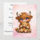 Celebrate the upcoming arrival of a little bundle of joy with this adorable highland cow baby shower invitation. Featuring a sweet fluffy highland cow cuddling a teddy bear and surrounded by soft pink watercolor sparkles, this charming design brings warmth, whimsy, and a touch of rustic farm charm to your special celebration.